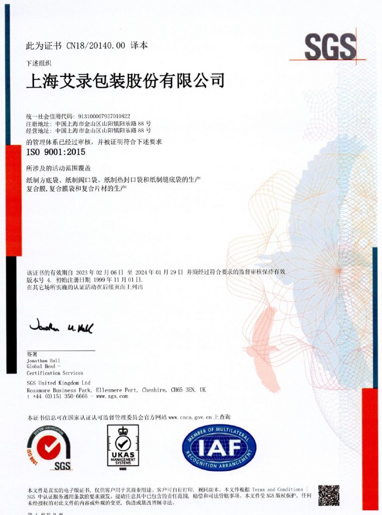 上海艾錄包裝股份有限公司(證券簡稱:上海艾錄 證券代碼:301062)成立于2006年,主要從事工業(yè)用紙包裝、塑料包裝及智能包裝系統的研發(fā)、設計、生產、銷售以及服務。經過多年的持續(xù)發(fā)展,公司已由國內領先的工業(yè)用紙包裝公司,成長為一家工業(yè)與消費包裝產品皆備的軟體包裝一體化解決方案提供商,并通過智能化、柔性化、定制化的生產能力,為妙可藍多、蒙牛、光明、雀巢、菲仕蘭、 陶氏、巴斯夫、沈陽化工、佰利聯、德高、立邦、東方雨虹、美巢等國內外知名工業(yè)及消費類企業(yè)客戶提供包裝解決方案所需的相關產品。